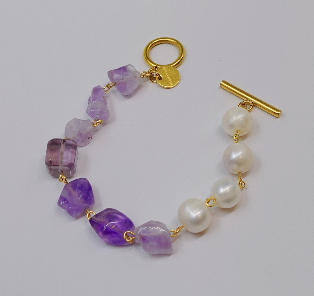 A gentle, spiritual blend of amethyst and pearls designed to help you reconnect with your inner peace and intuition. Thoughtfully crafted with an adjustable 3-step gold clasp for daily wear and ease.