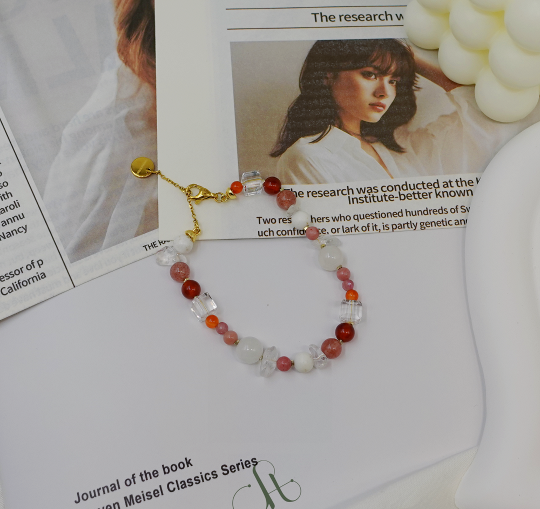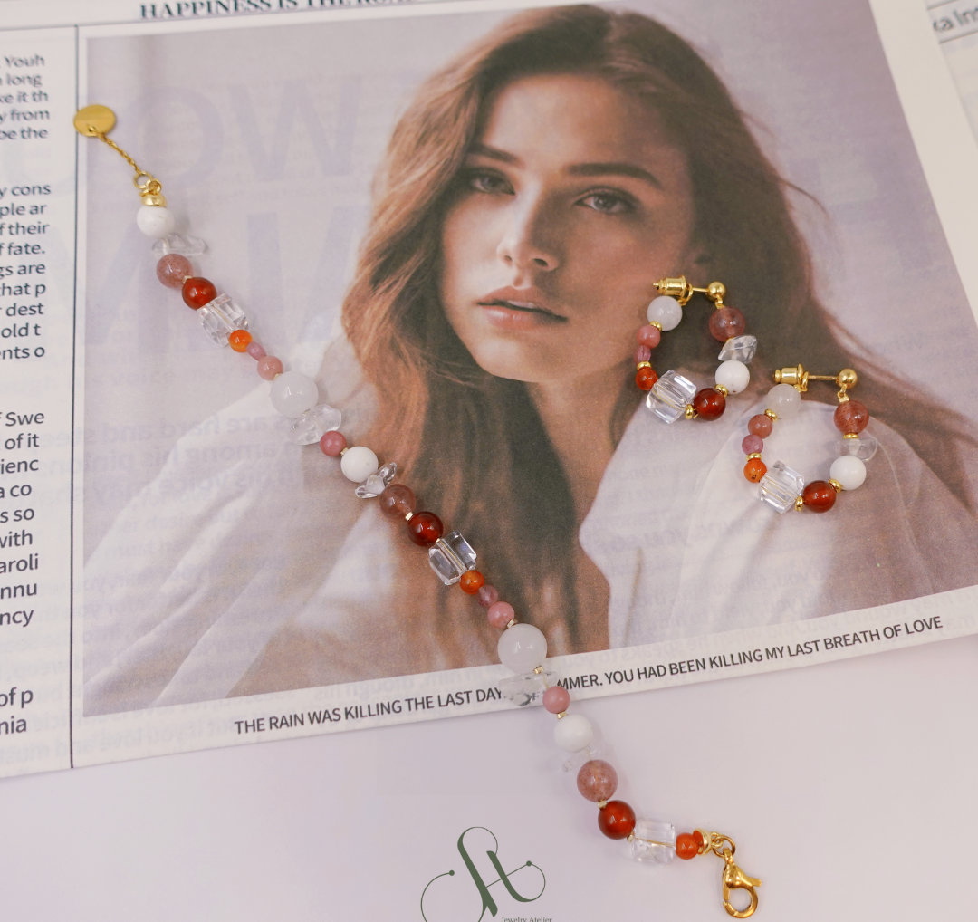 A romantic fusion of 7 natural crystals in warm reds and soft pinks, designed to soothe emotions, promote love, and bring emotional balance