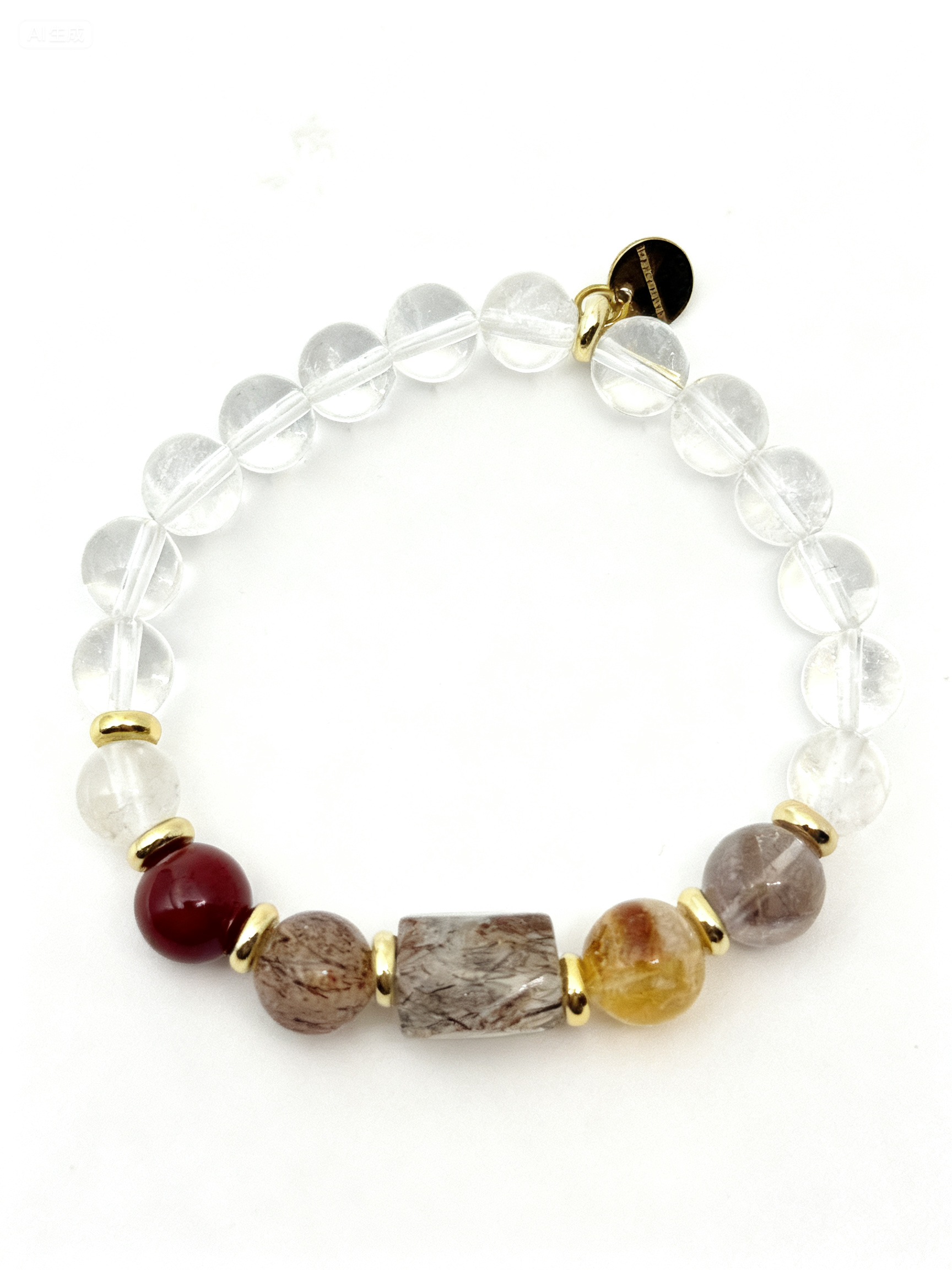 紅瑪瑙 × 粉晶 × 白水晶:紅瑪瑙穩固根基、護持氣場;粉晶柔化情緒、修復心輪;白水晶清理雜訊、放大整體頻率。