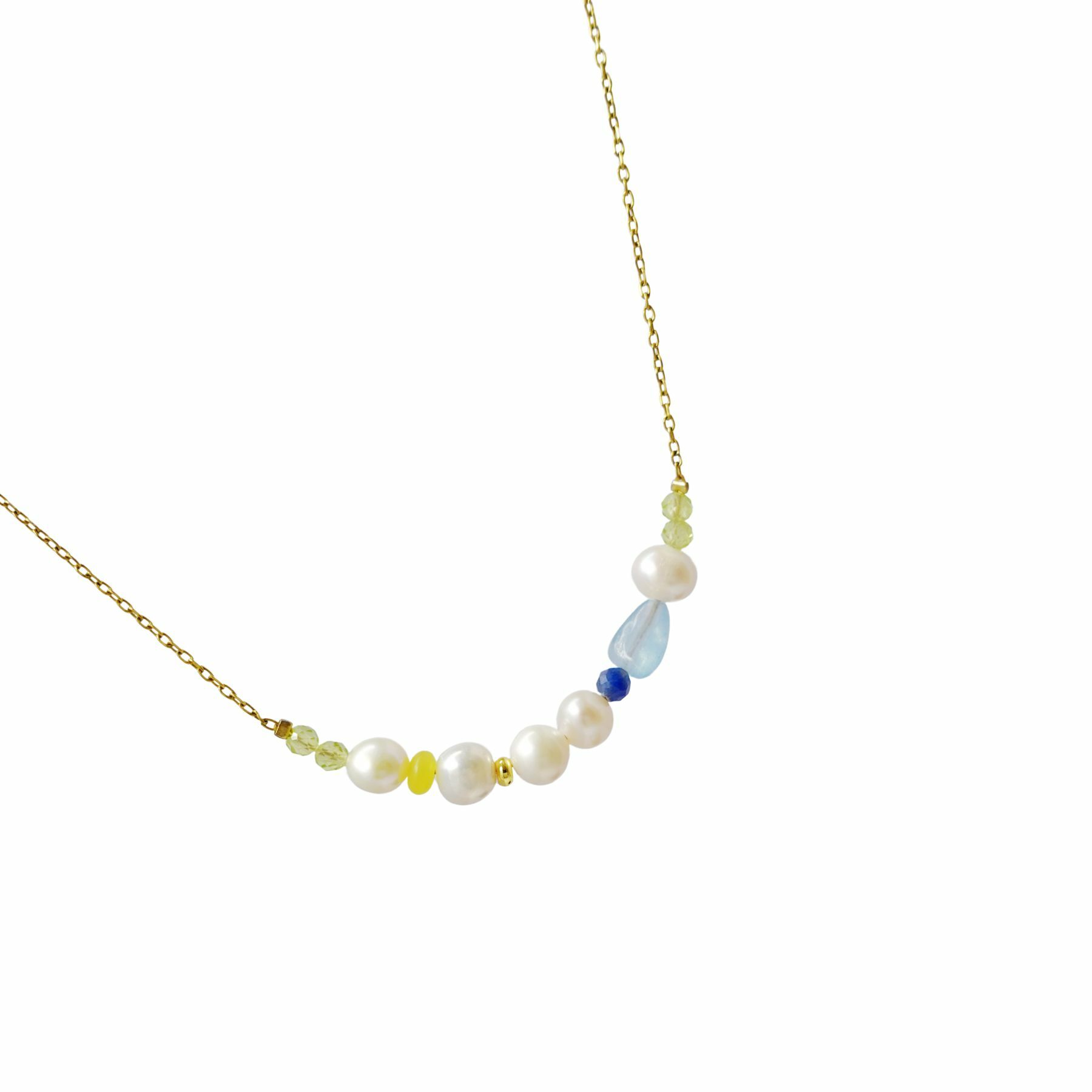 Natural freshwater pearl, peridot, lemon jade, aquamarine, blue aventurine