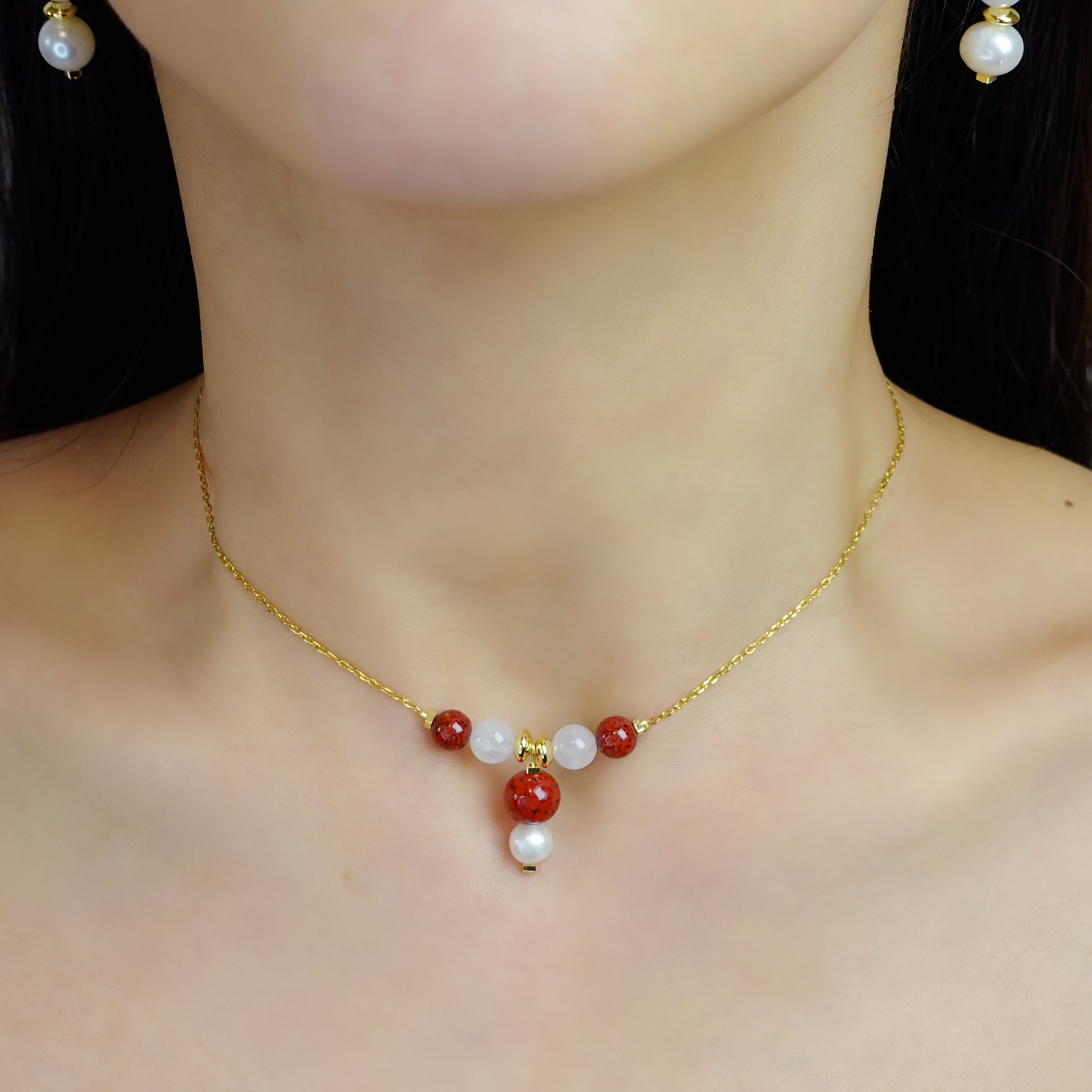 天然帝王硃砂 、天然白水晶、 天然淡水珍珠