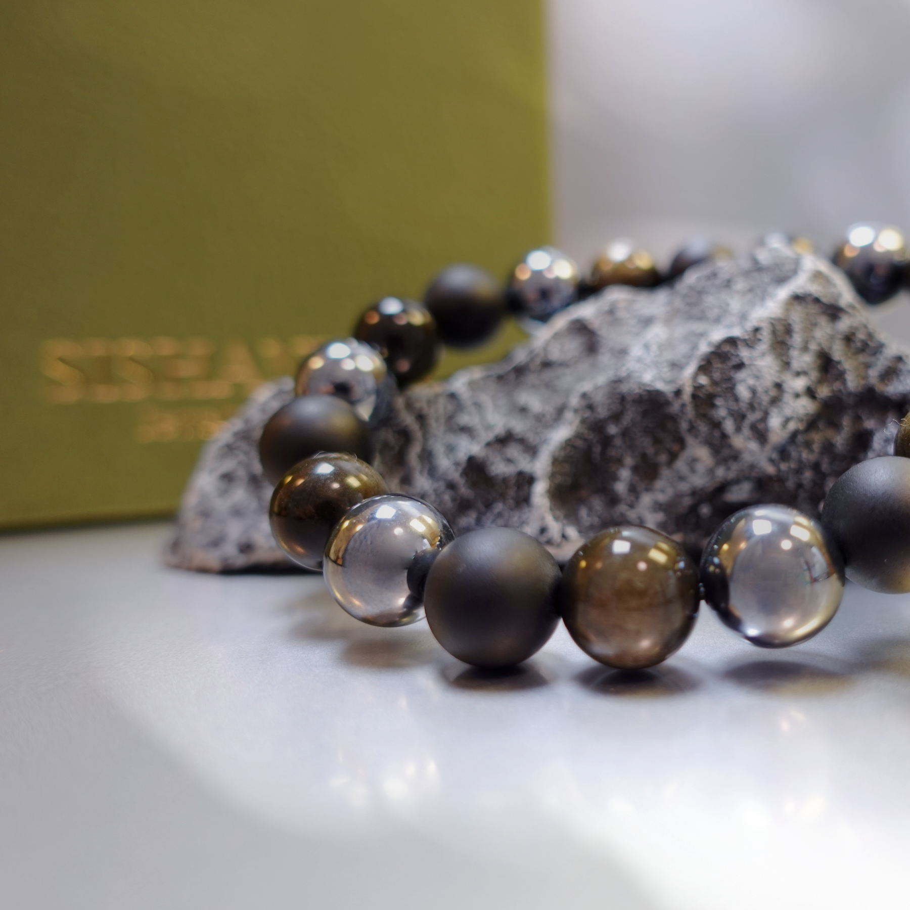 Matte + Polished Black Onyx: Stabilizes emotions, eases anxiety, and sharpens concentration.