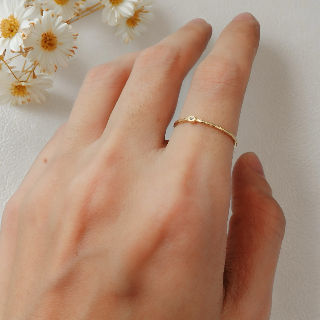A single 1mm moissanite glimmers like a quiet spark on the surface.