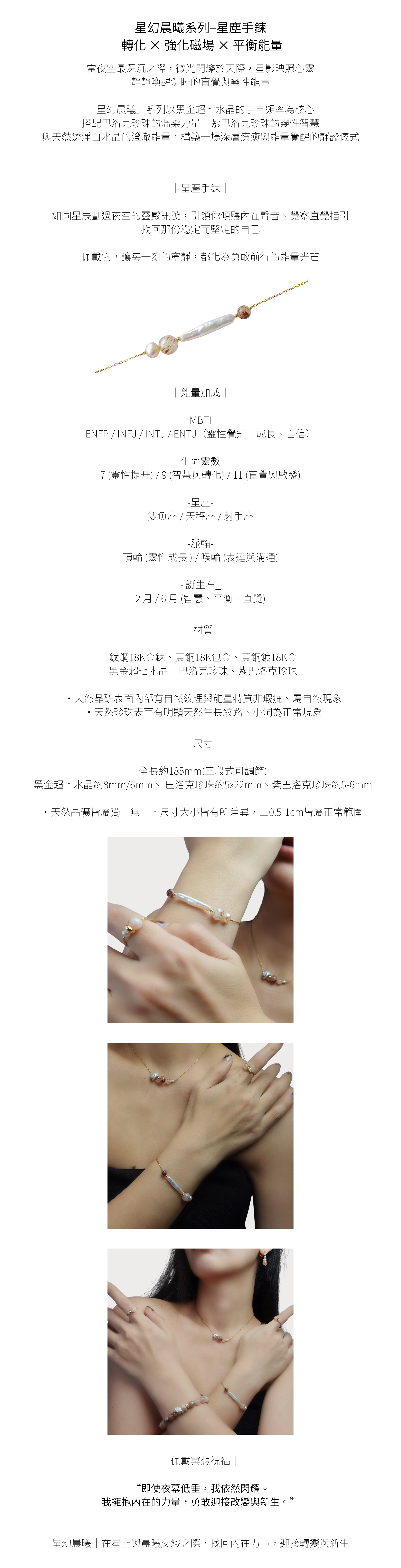 鈦鋼18K金鍊、黃銅18K包金、黃銅鍍18K金、黑金超七水晶、巴洛克珍珠、紫巴洛克珍珠