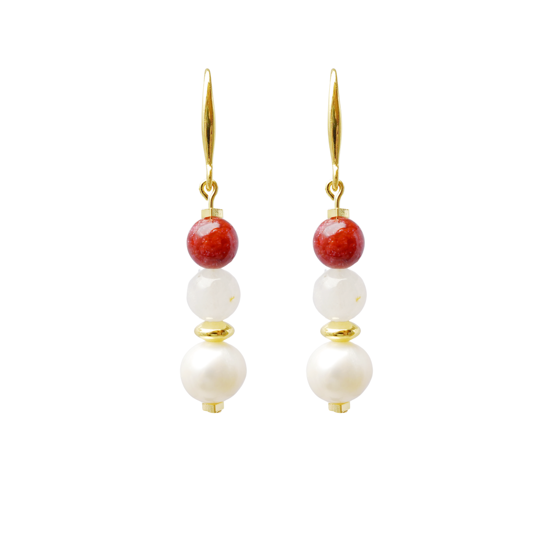 Natural Cinnabar × Clear Quartz × Freshwater Pearl