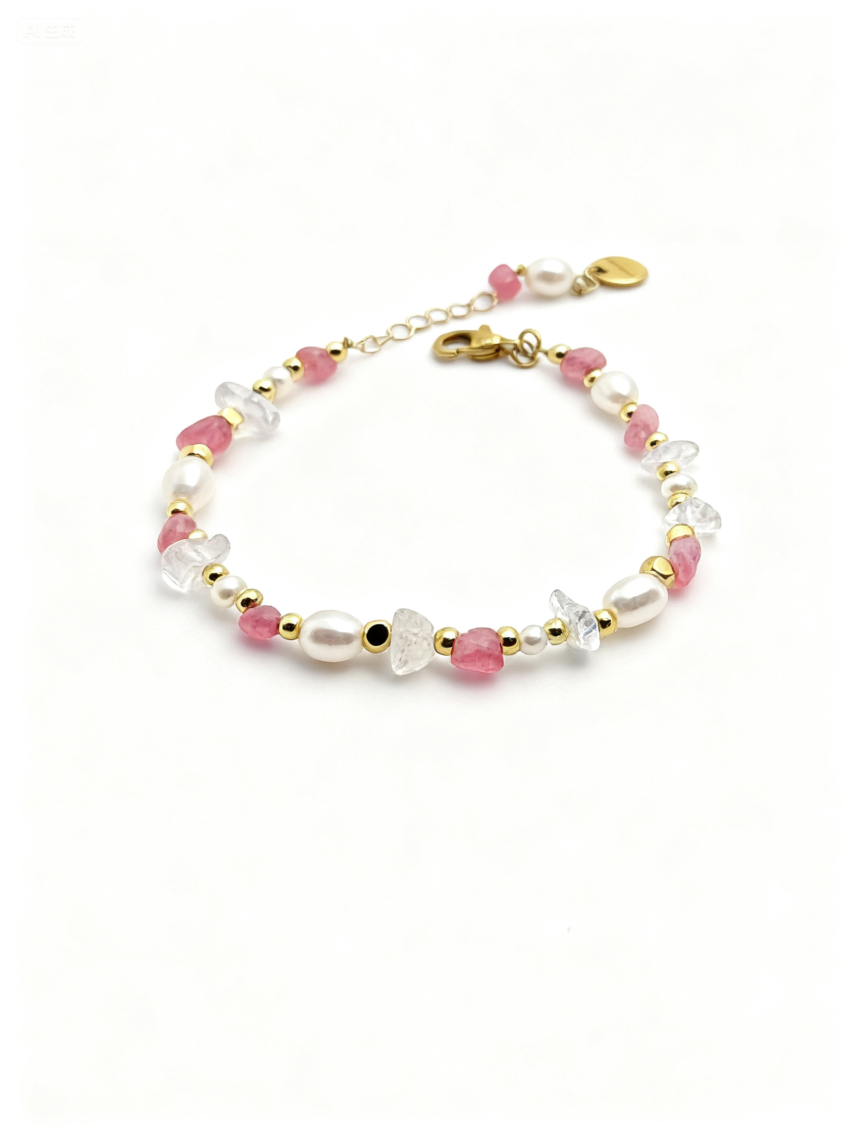 草莓晶(隨型)、珍珠 3mm/5×6、白水晶(隨型)