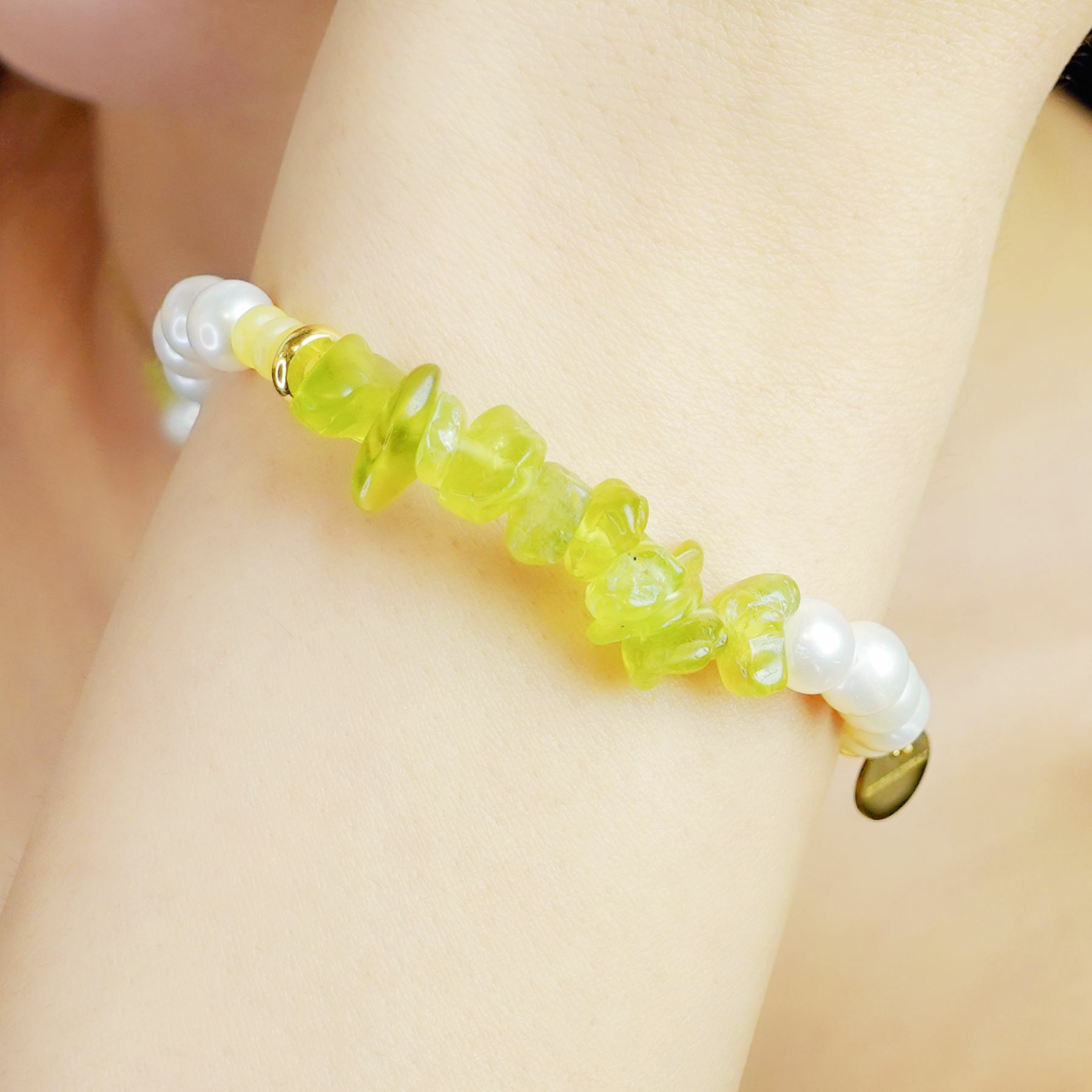Pearls bring soft emotional resonance, while peridot and lemon jade add freshness and vitality.