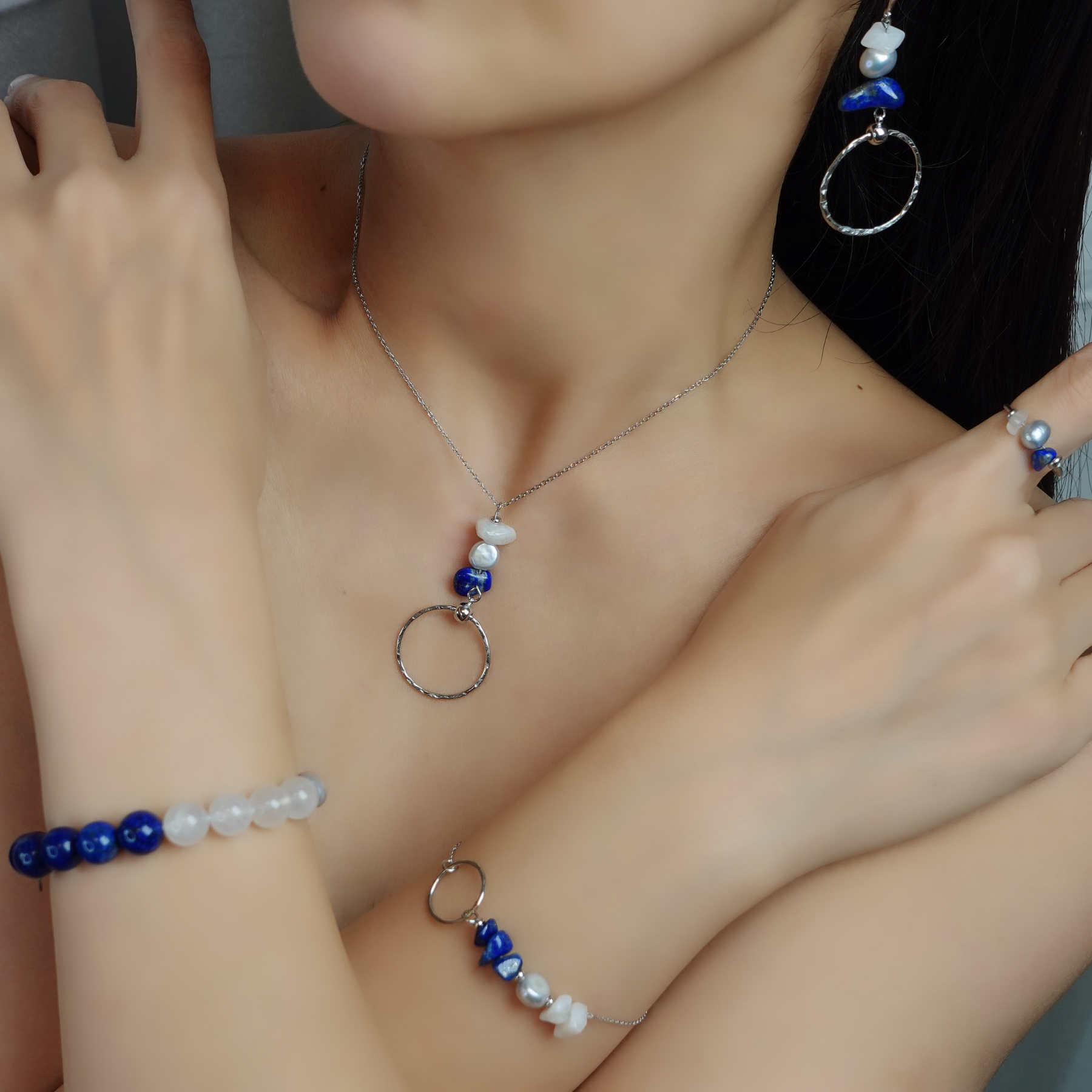 這是一套集結「靈性覺察 × 情緒平衡 × 靜夜守護」三重能量的藍銀系飾品組合。