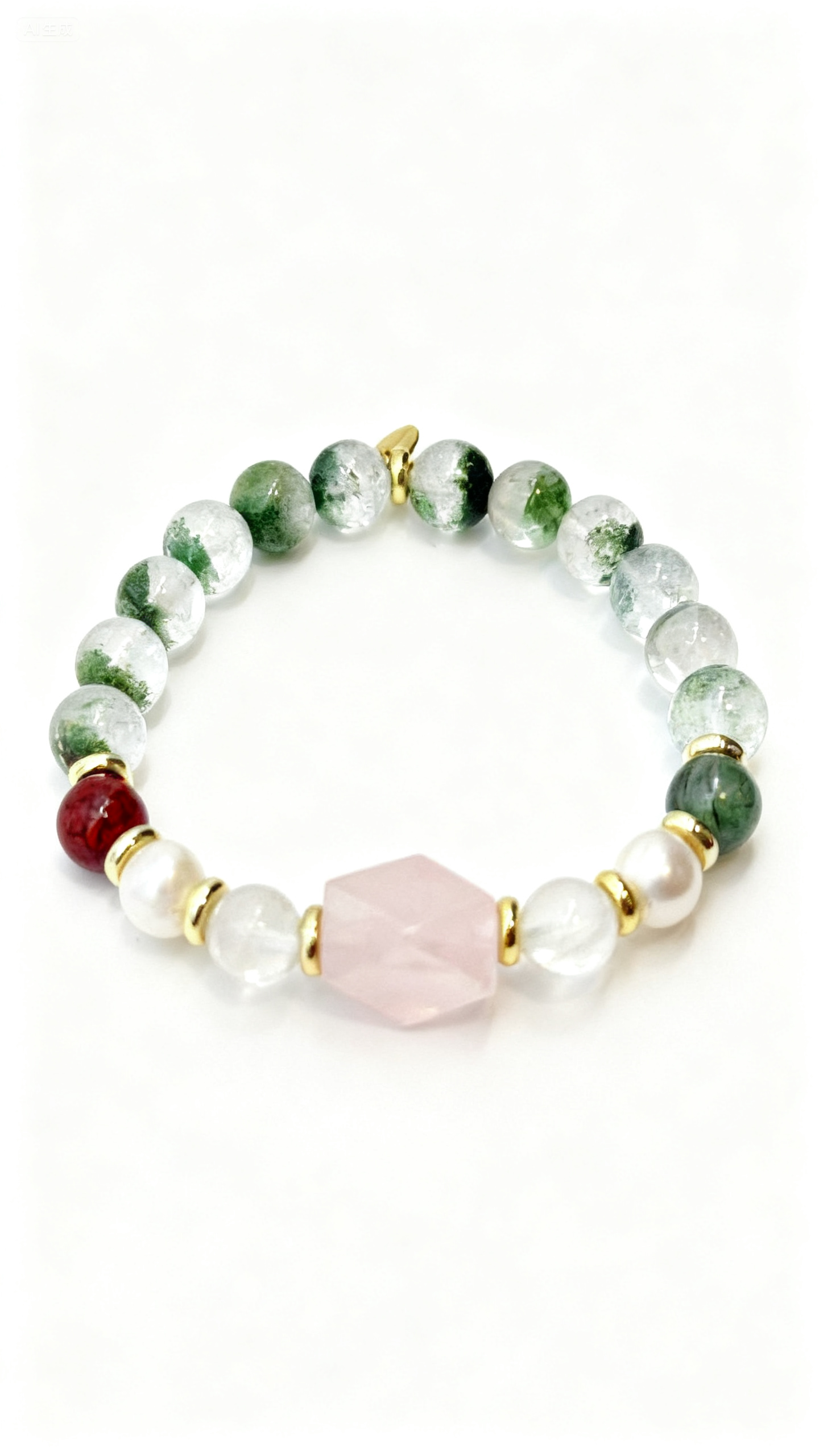 Wearing Feel: Medium-sized beads with a grounded presence; vermilion red as a visual focal point, balanced by green-toned crystals that harmonize the energy field.